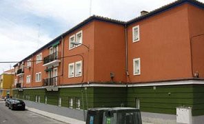 Bloques de viviendas antes y después de la instalación de una fachada SATE